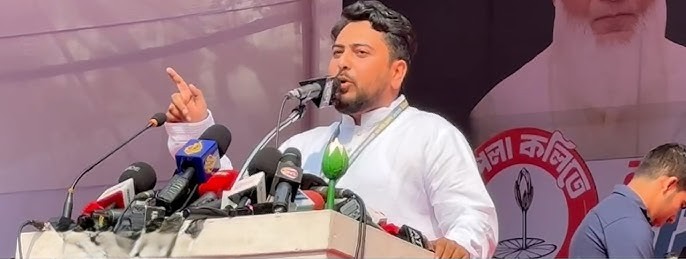 আজ রোববার ঢাকার মেরুল বাড্ডার ডিআইটি প্রজেক্ট খেলার মাঠে এনসিপি–মনোনীত এবং ১১–দলীয় নির্বাচনী ঐক্য–সমর্থিত প্রার্থী নাহিদ ইসলামের নির্বাচনী জনসভায় সভাপতির বক্তব্যে তিনি এ কথাগুলো বলেন। জনসভায় প্রধান অতিথি ছিলেন জামায়াতে ইসলামীর আমির শফিকুর রহমান। বিশেষ অতিথি ছিলেন বাংলাদেশ খেলাফত মজলিসের আমির মামুনুল হক।