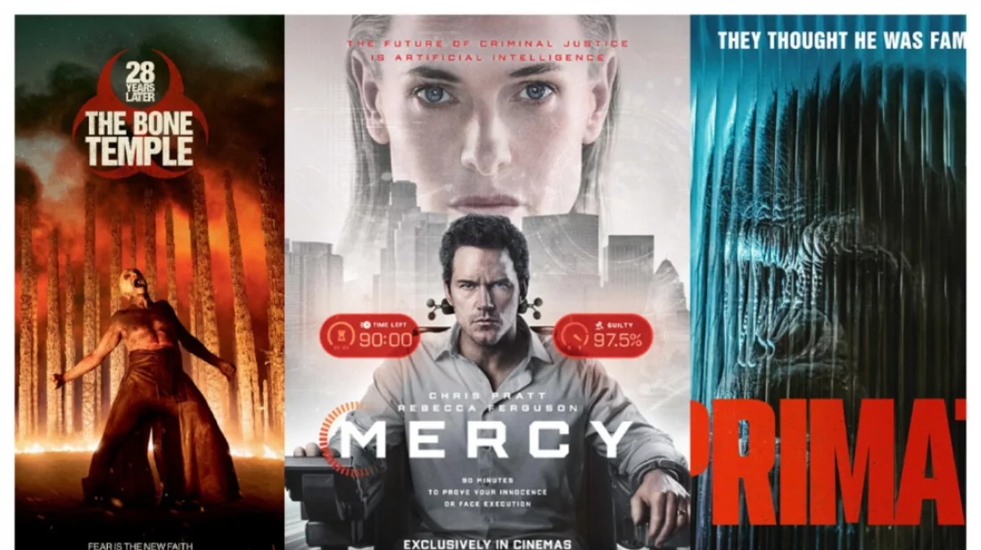 আজ ৯ ফেব্রুয়ারি একসঙ্গে তিনটি হলিউড সিনেমার প্রদর্শন শুরু করল দেশের জনপ্রিয় মাল্টিপ্লেক্স চেইন স্টার সিনেপ্লেক্স। একদিনে দর্শকরা উপভোগ করতে পারবেন জম্বি-থ্রিলার, বৈজ্ঞানিক কল্পকাহিনি ও হরর—তিন ভিন্ন ঘরানার ছবি। তালিকায় রয়েছে ‘২৮ ডেজ লেটার’ ফ্র্যাঞ্চাইজির চতুর্থ কিস্তি ‘২৮ ইয়ার্স লেটার: দ্য বোন টেম্পল’, সাই-ফাই থ্রিলার ‘মার্সি’ এবং হরর ছবি ‘প্রাইমেট’।
